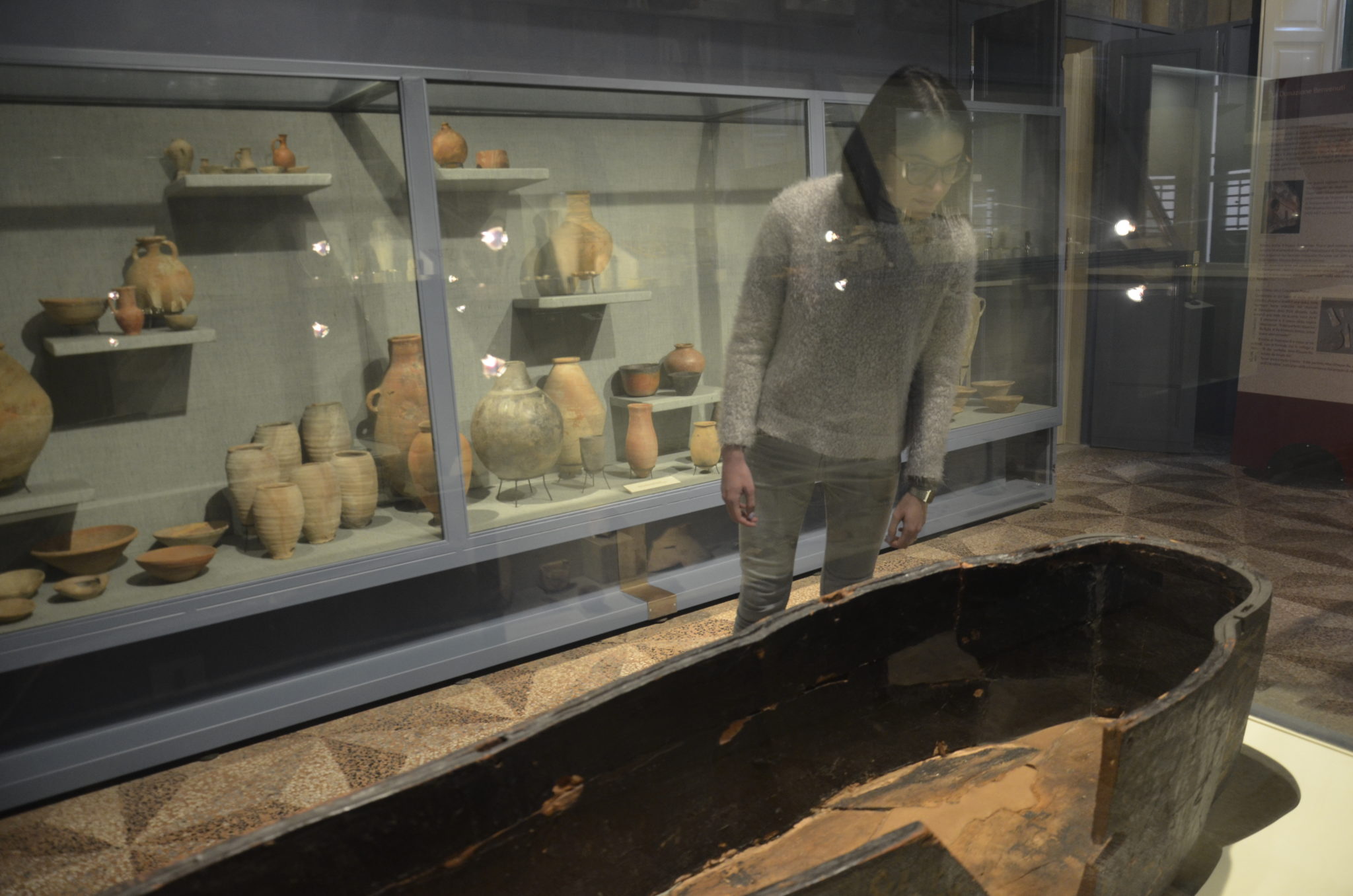 Subito dopo c’è stato il taglio del nastro e l’inaugurazione della mostra alle Collezioni Egittologiche che si sono presentate con un nuovo allestimento, grazie a una nuova illuminazione, nuove soluzioni espositive e soprattutto a nuovi colori, in particolare l’azzurro carta da zucchero che riprende le cromie dei soffitti affrescati.